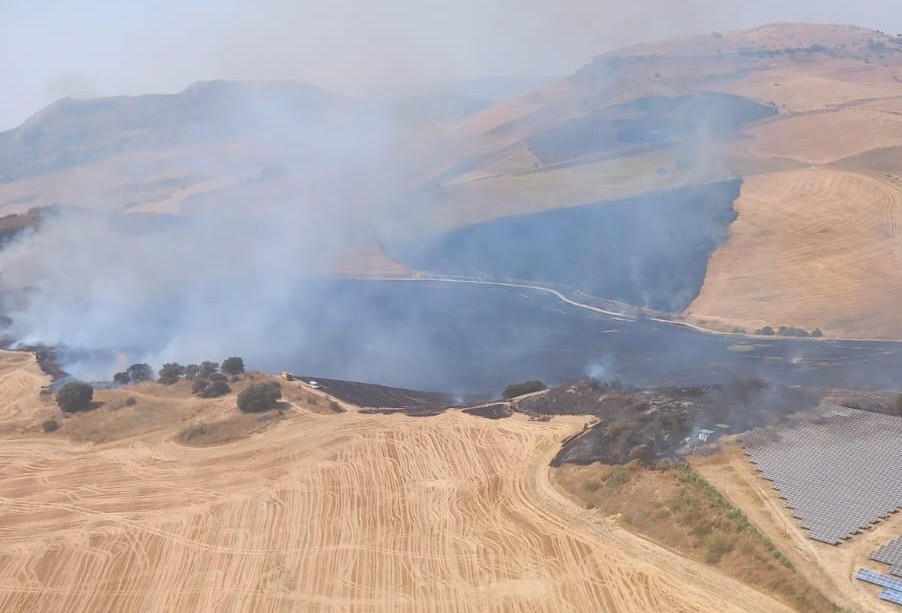 Así, el fuego, según han informado desde el Plan Infoca en un mensaje en redes sociales, se ha declarado sobre las 15.25 horas, en unos parajes cercanos a la planta solar de la finca La Viña.