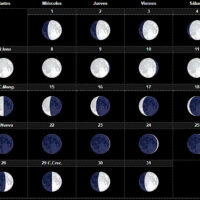 Día 21 martes.- Luna Nueva, a las 14:25 en la constelación de Leo; distancia geocéntrica 402.309 km.