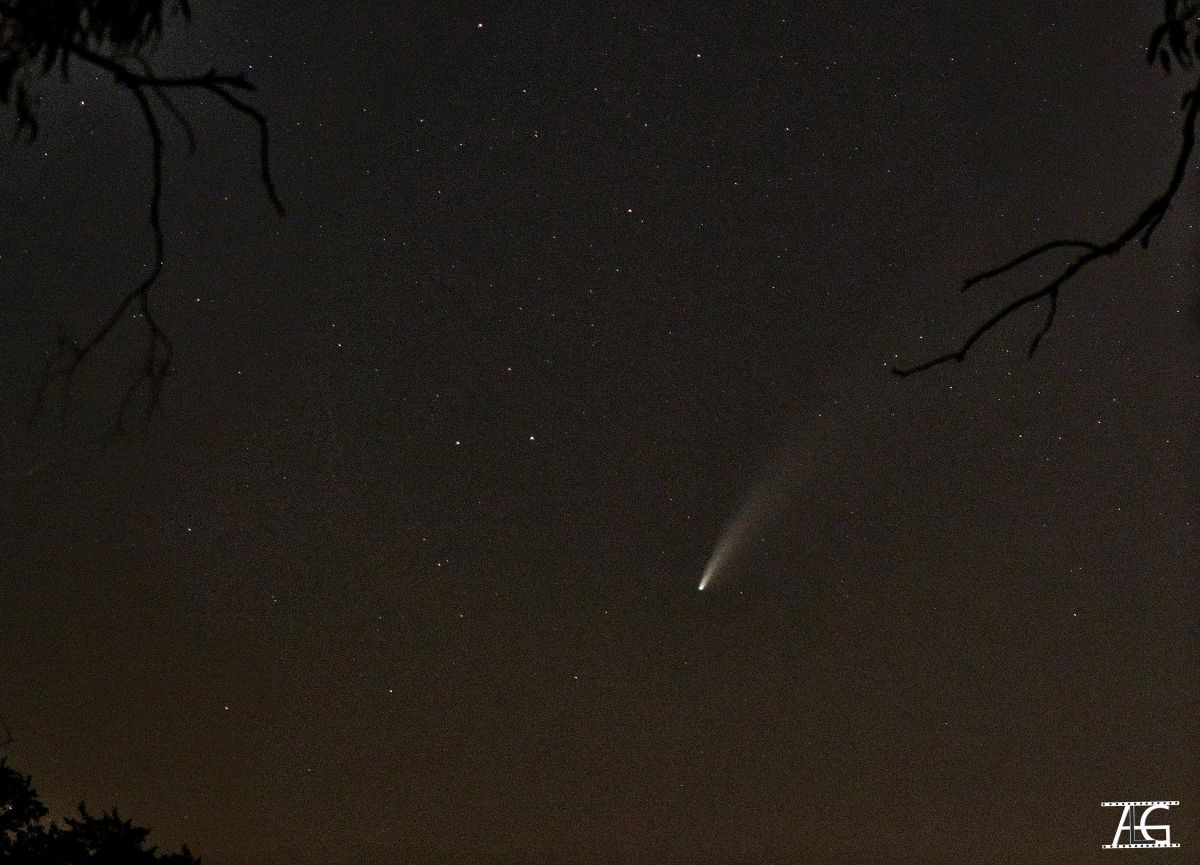 Iniciamos el año con una foto de la constelación del cometa C/2020 F3 (NEOWISE), magistralmente captada por el fotógrafo rondeño Antonio López González. Este cometa tuvo su perihelio (aproximación más cercana al Sol) el pasado 3 de julio de 2020. Para ver más fotos de él, acudid a la página https://www.instagram.com/antonioelpaste61/. Podéis ver la fotografía con más detalle y sin rótulos al final de la colaboración.