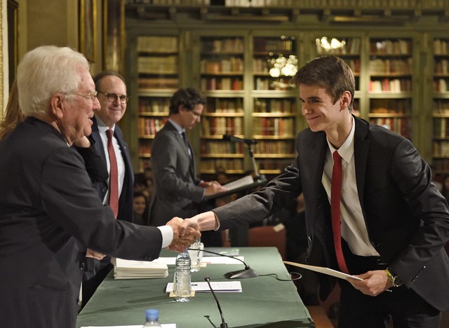 De forma excepcional, en esta convocatoria se han otorgado dos Menciones de Honor ex aequo, dotadas con 6.000 euros, a cada uno de los estudiantes cuyas calificaciones alcanzan el 9,700, distribuidos a lo largo de los dos primeros años de duración del grado universitario.