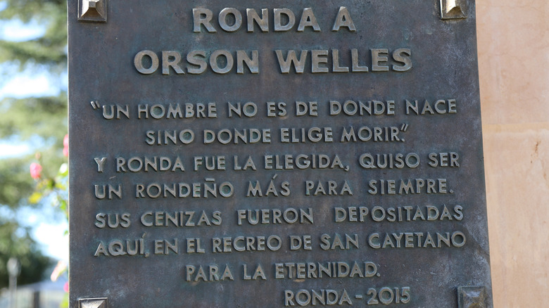 “Un hombre no es de donde nace, sino de donde elige morir”. Orson Welles, a quien se atribuye esta frase, no eligió morir en Ronda, pero consiguió que sus restos se quedasen para siempre en la ciudad del Tajo. El 8 de mayo de 1987, su hija Beatrice colocó las cenizas del director, enamorado de la ciudad desde casi siempre, en un pozo del jardín de una finca de Antonio Ordóñez.
