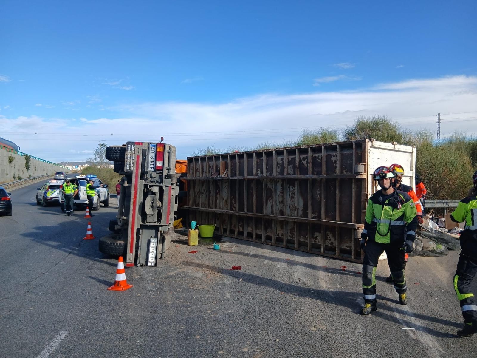El accidente de ha producido entre las carreteras A-369 (Ronda-Algeciras) y A-397 (Ronda-San Pedro de Alcántara, cuando la carga del camión se ha descompensado y ha provocado el vuelco lateral del vehículo.
