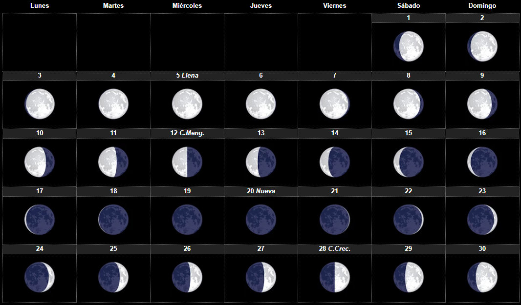 Día 1 sábado.- La Luna en Nodo ascendente a las 18:46 en la constelación de Acuario.