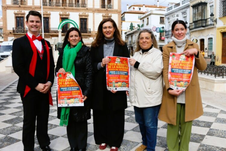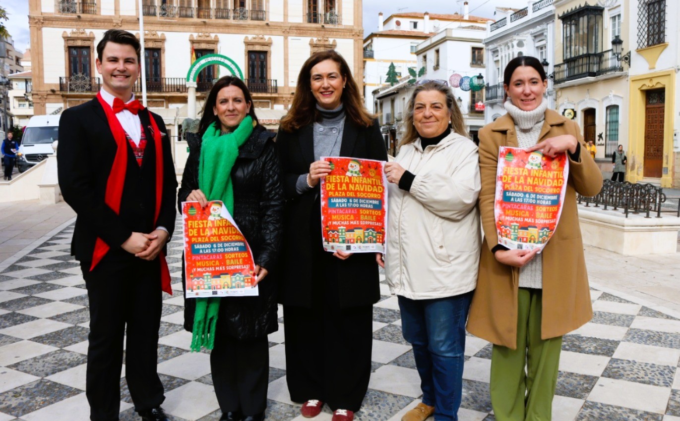 Las delegadas municipales de Cultura y Derechos Sociales, Rebeca Muñoz y Cristina Durán, respectivamente, han presentado hoy la fiesta infantil de Navidad que se desarrollará este próximo sábado en la plaza del Socorro, a partir de las 17.00 horas. Junto a ellas han estado presentes el director del Centro de Artes Escénicas ‘Entre Bambalinas’, Ángel Manzano; la presidenta de Solidari@s en Ronda, Pepi Chito; y Andrea Campos, de ‘La Madriguera’. También participará en este evento la academia de baile Double Gyro y la Presidenta y las Damas Goyescas, Milagros Naranjo y el resto de la jóvenes.