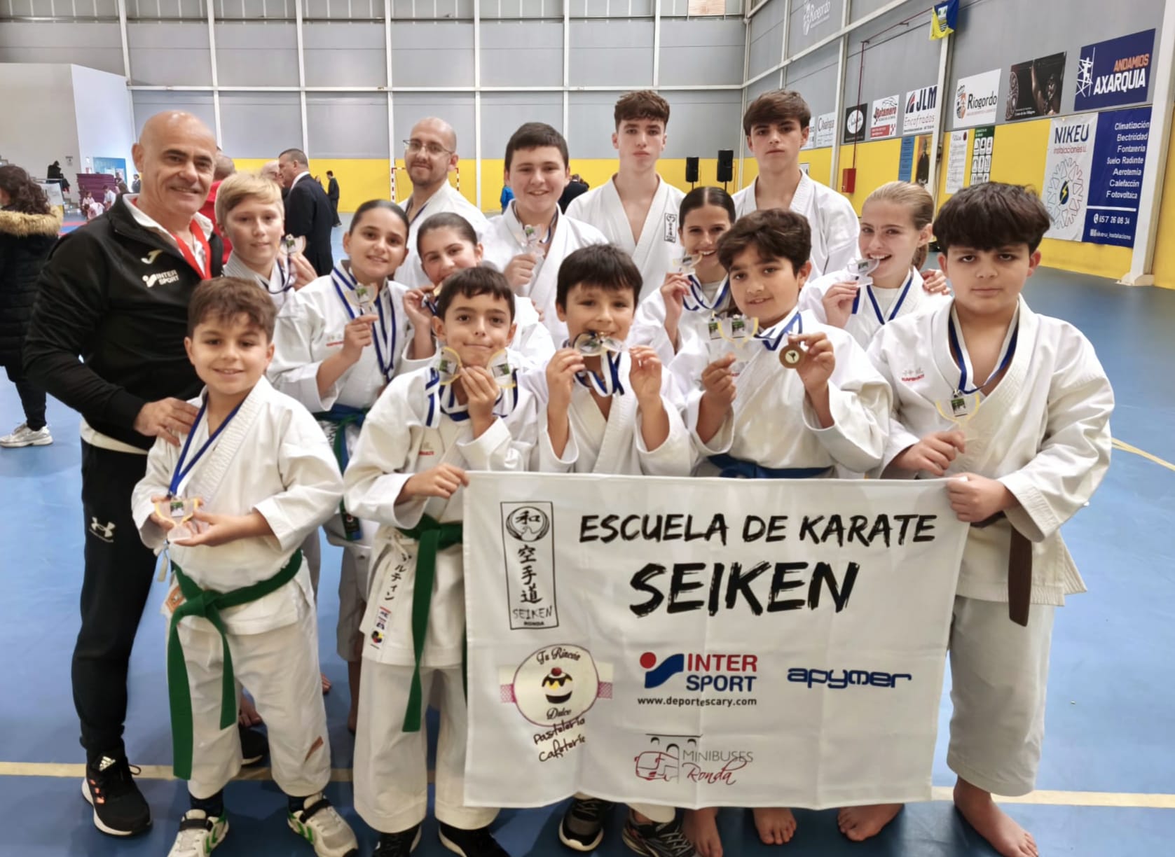Los karatecas de la Escuela Seiken de Ronda participaron el fin de semana en el Trofeo de Río Gordo, la última competición del Circuito Provincial de Málaga, con un equipo formado por 14 deportistas.