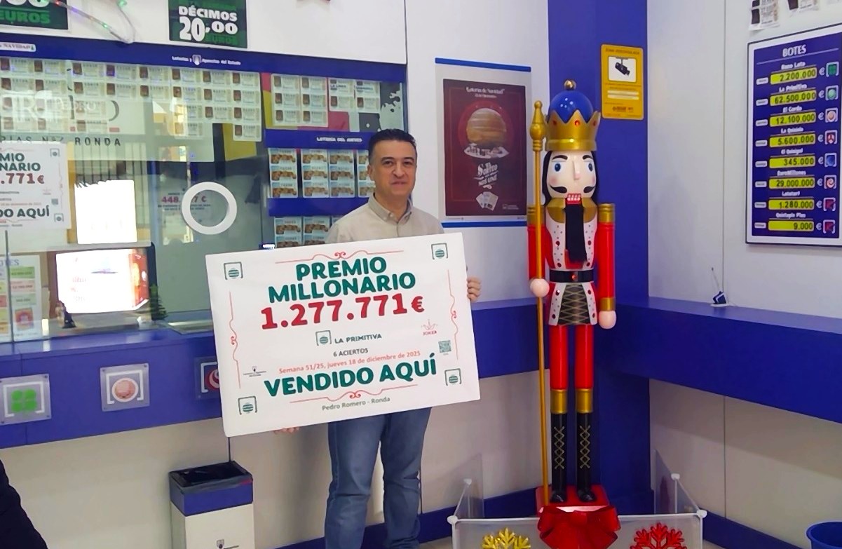 Un acertante ha sido premiado con 1.277.771,89 euros gracias a un boleto de Primera Categoría, seis aciertos, que ha sido validado en la Administración de Loterías número 4, situado en la calle Molino, 1 de Ronda, en el marco del sorteo de La Primitiva celebrado este jueves, 18 de diciembre, según datos de Loterías y Apuestas del Estado consultados por Europa Press.