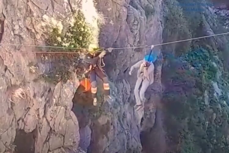 Un joven de nacionalidad belga ha sido rescatado este sábado después de quedarse atascado a unos 80 metros de altura en la tirolina de la Presa de los Caballeros de Montejaque.
