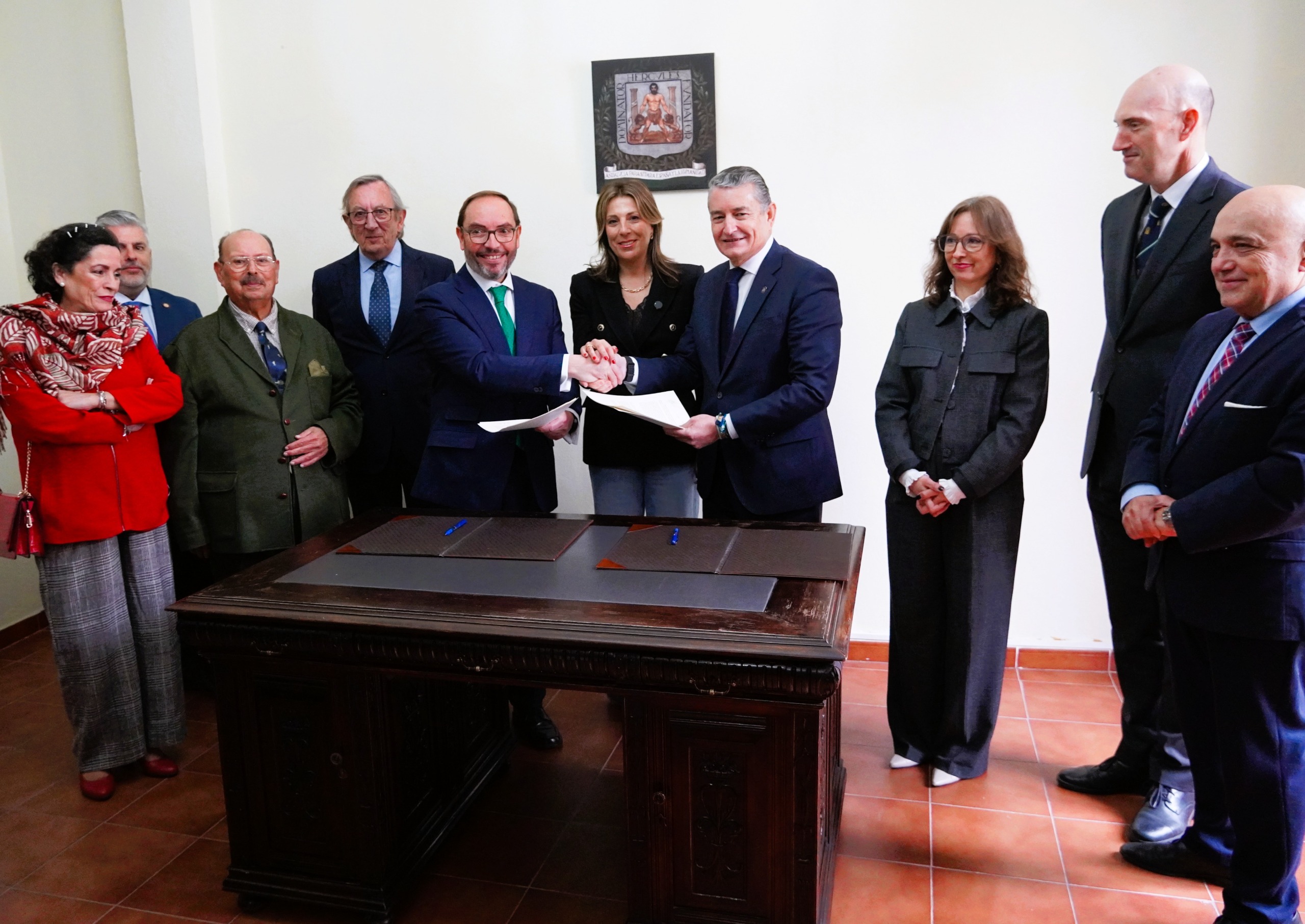 La protección incluye también la mesa de escritorio de estilo renacentista en torno a la cual se reunieron los representantes de la Asamblea Regionalista de 1918, conservada en la Sala Blas Infante, en la planta primera. En este espacio se ha formalizado la firma del acuerdo y, desde hoy, exhibirá igualmente una réplica del escudo de Andalucía presentado originalmente en la Asamblea de Ronda de 1918, una copia en lienzo, de 46 x 43,5 centímetros, montada sobre bastidor de madera, con la que la se pretende contribuir a la adecuada recreación y contextualización histórica del conjunto.