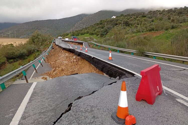Los efectos del temporal mantienen siete carreteras de la Serranía cortadas al tráfico, siendo la que más complicaciones presenta la A-374 que une Ronda con Sevilla y que sufrió el colapso de la calzada el pasado 7 de febrero, a la altura de Algodonales, según han informado desde la Dirección General de Tráfico.