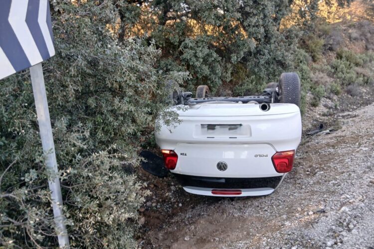 Un turismo se ha salido esta tarde de la calzada y ha volcado sobre el arcén de la carretera A-367 que comunica Ronda con Campillos, en la recta del circuito Ascari, sin que se hayan registrado heridos a pesar de que el vehículo ha quedado prácticamente aplastado.
