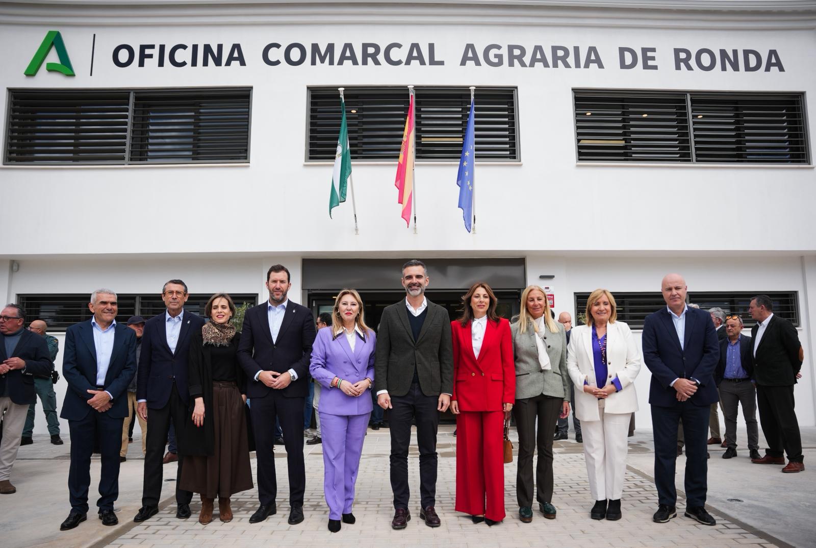 El consejero de Agricultura, Pesca, Agua y Desarrollo Rural, Ramón Fernández-Pacheco, y la consejera de Economía, Hacienda y Fondos Europeos, Carolina España, han inaugurado este lunes la nueva sede de la Oficina Comarcal Agraria (OCA) de Ronda, en la provincia de Málaga. En el acto ha intervenido la viceconsejera de Agricultura, Consolación Vera, destacando que las OCAs representan “la administración a pie de campo”, la que responde en el día a día y “cuando surgen los problemas reales de agricultores y ganaderos”. “Ante los daños de las DANAs, o frente a emergencias de sanidad vegetal y animal como la lengua azul o la gripe aviar, estas oficinas están siempre en primera línea de apoyo al campo andaluz”, ha señalado.