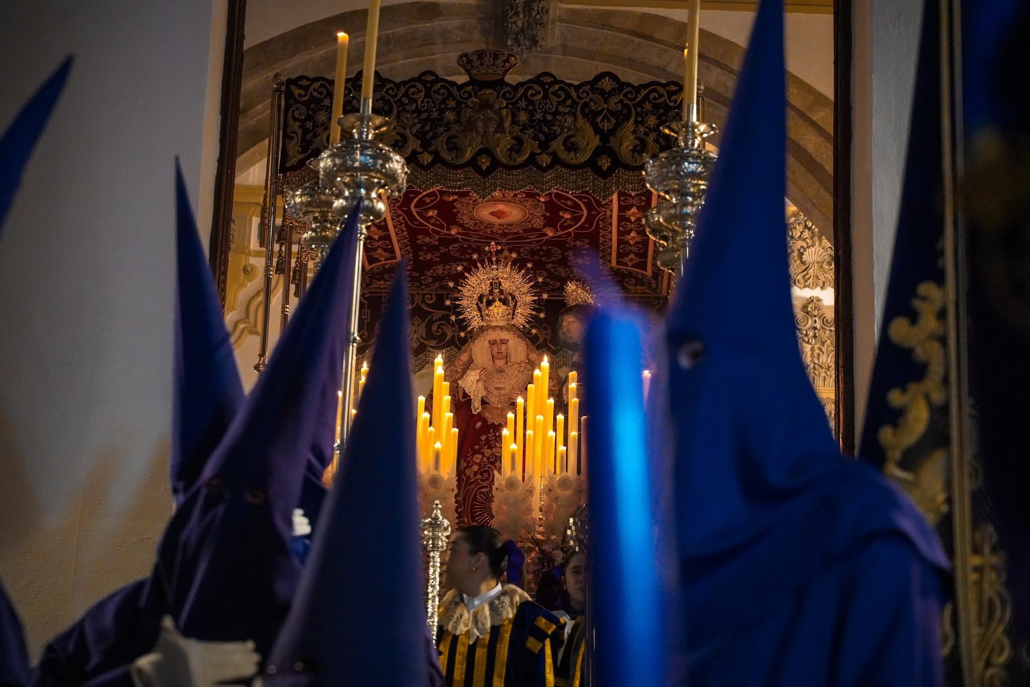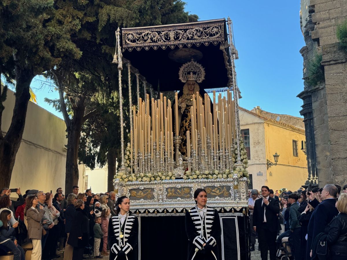 Tras él aparecía el impresionante paso de costaleros de Nuestra Señora de los Dolores, en una madrugada en la que las velas brillaban junto al rostro de la Virgen, en una imagen para el recuerdo.