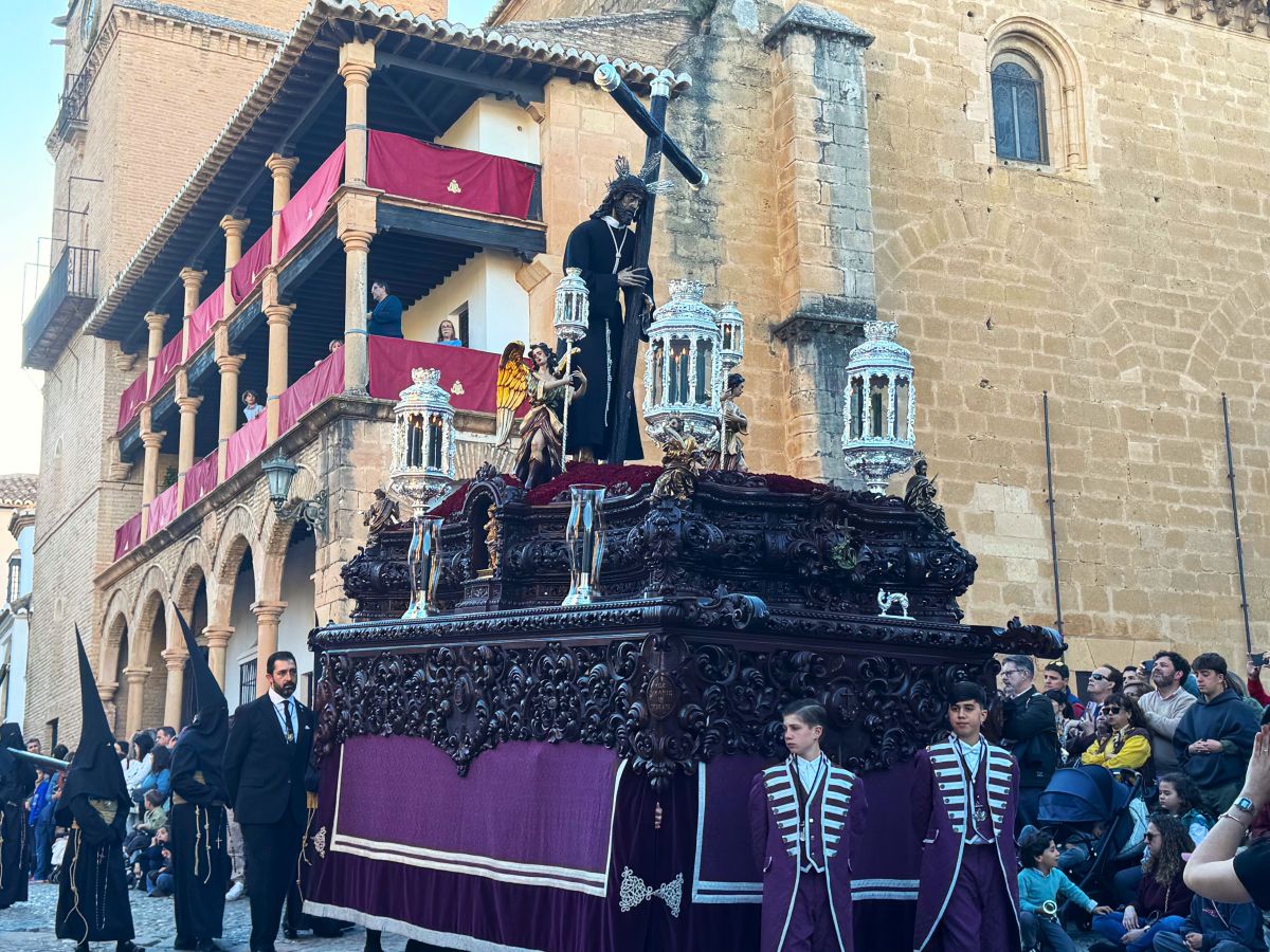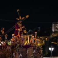 Una interminable fila de nazarenos y de penitentes con velas en sus manos acompañaban al paso de costaleros de Nuestro Padre Jesús Nazareno mientras subía la cuesta de Santa Cecilia. Al son de la Bana de Cornetas y Tambores ‘Nuestra Señora del Rosario’ de Arriate marchaba con ritmo pausado y elegante, ante el constante aplauso del público asistente.