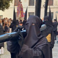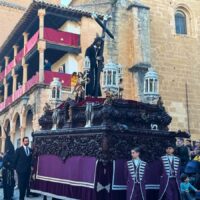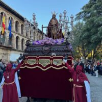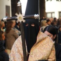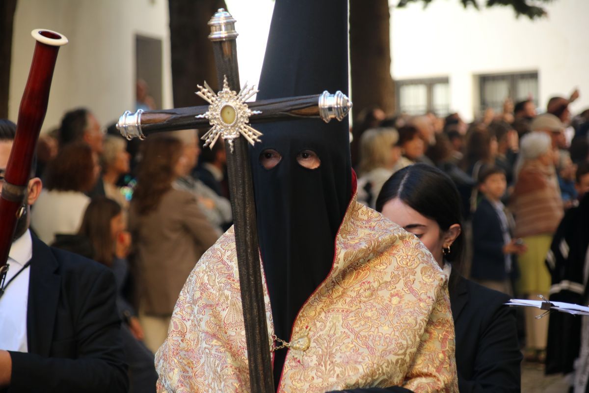 A las siete de la tarde iniciaba su estación de penitencia desde la colegiata de Santa María la Mayor la Hermandad Franciscana de la Vera+Cruz, con su tradicional sobriedad. Música de capilla de ‘Vox Passionis’ para el paso de costaleros del Señor del Perdón, mientras que el paso de palio de la Virgen de las Penas marchaba acompañado por la Banda Municipal de Música ‘Paco Tenorio de Arriate.