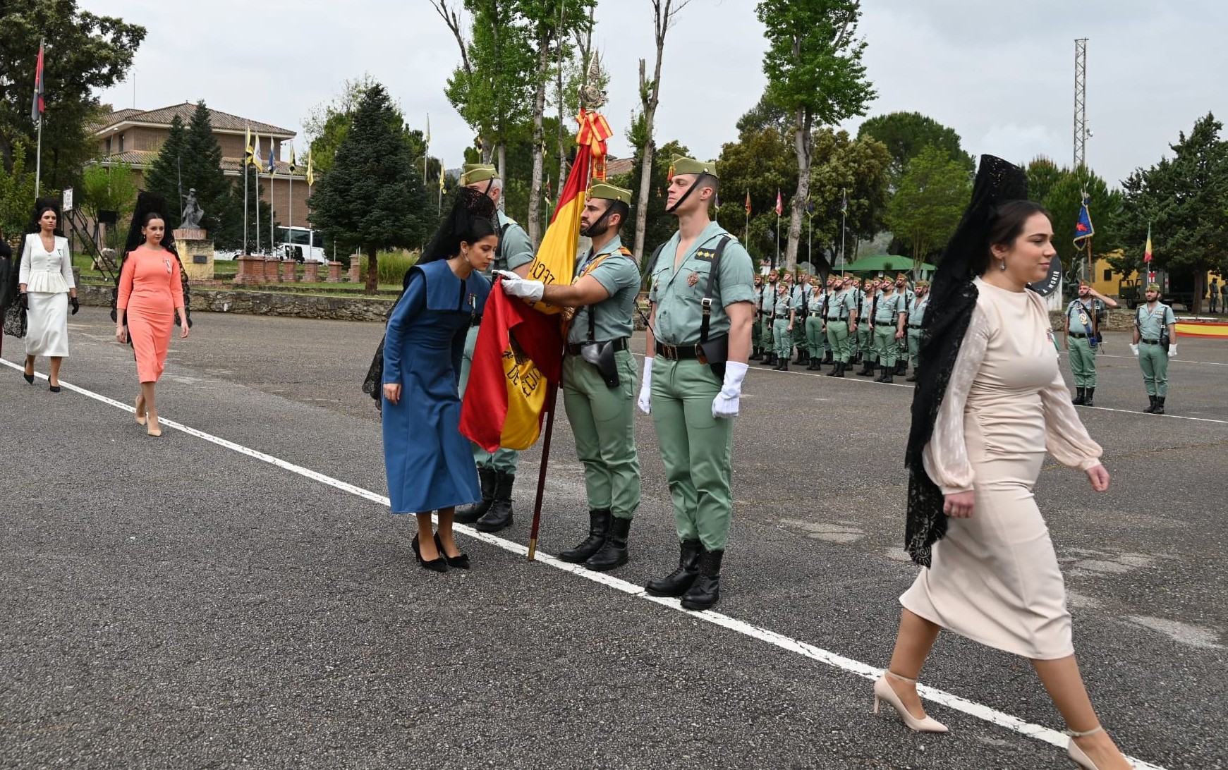 Las Damas Goyescas juran la bandera de España ante un escuadrón de la Legión