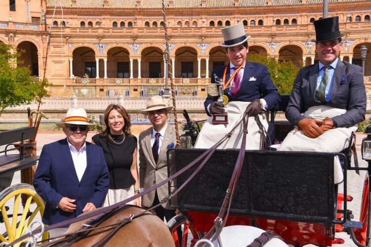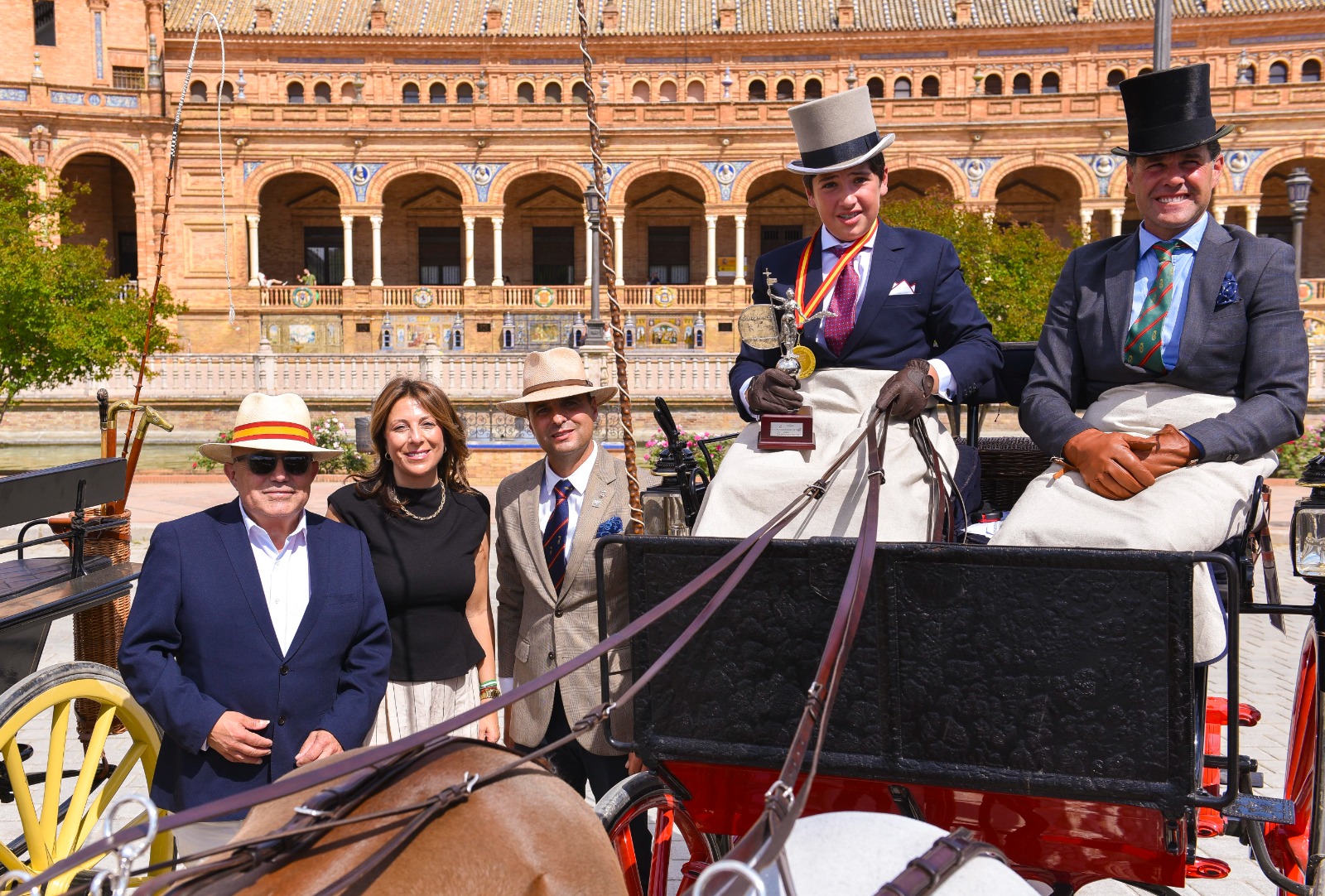 Maripaz Fernández y Jesús Vázquez junto a uno de los carruajes ganadores del Concurso de Enganches de Sevilla.